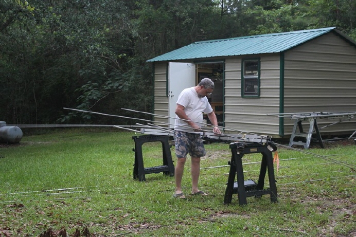 2015 was supposed to be a "Something Different" year for the 599DXA Field Day effort. We had decided to go class 4AB, 4 HF stations all battery/solar powered and running 5W output power. K2FF/W5UE have been planning and collecting equipment since FD 2014 ended. Well, family medical issues caused me to have to back out just 2 weeks ago and the group decided to pull the plug on the whole event since I had most of the equipment. While I still couldn't be away from home, things did improve this past week so I made a last minute decision to try and single-op with one of the 4 stations we had planned to field. The following slides tell this story. In this photo I am assembling the Tennadyne T6 LPDA early Saturday morning. This would be my antenna for 10-15-20m.