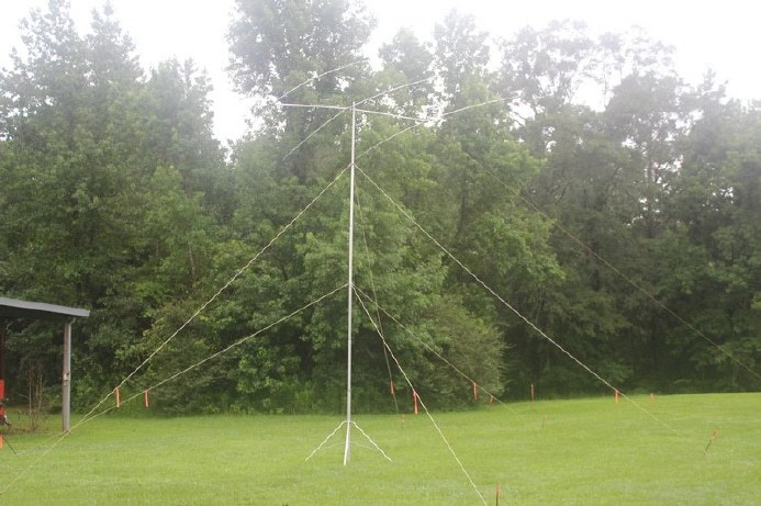Mast extended to its final height and secured with 2 sets of guys... survived the gusty winds and worked like a champ!!! SWR