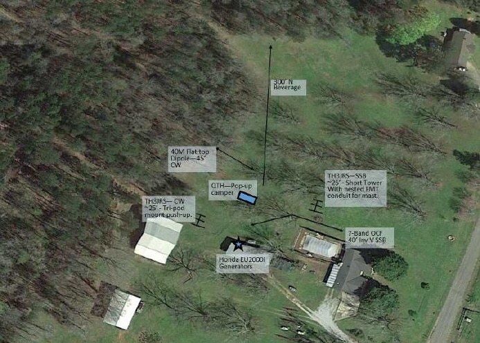 Google Earth image of our location showing our Field Day layout. Our sincerest thanks and gratitude go out to Ricky and Regina Cleveland, who allowed us to take over this family property for the weekend and provided so much encouragement and support.