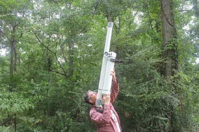 With the 2 tri-banders up and checked out we went to the task of raising our low band wire antennas. Here Glenn is using the "N5GH Special" cannon to get a line over a 60' or so tree.. this would be one end of the support for the 40M dipole used on the CW station. The other end was put over the pecan tree the camper was under. Total height of the dipole was almost 50' in a flattop configuration with broadside facing N-NE..
