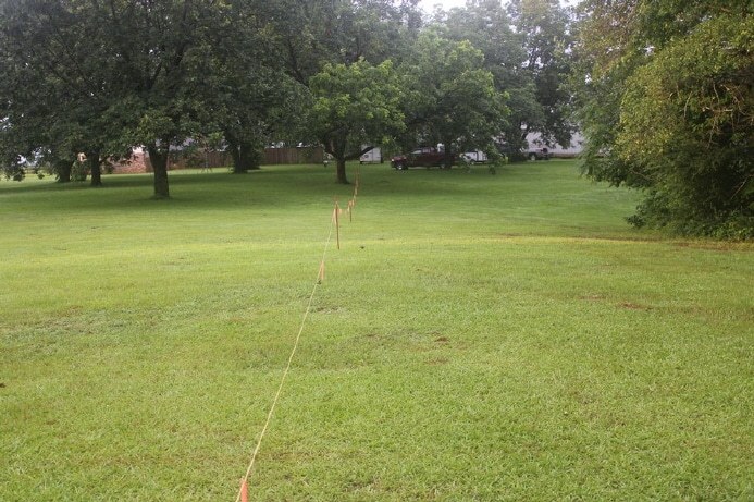 View of the beverage looking from termination end back to feedpoint... this antenna made a huge difference for Glenn on 75M Sat night since noise was still pretty high on low bands thanks to TS Cindy...