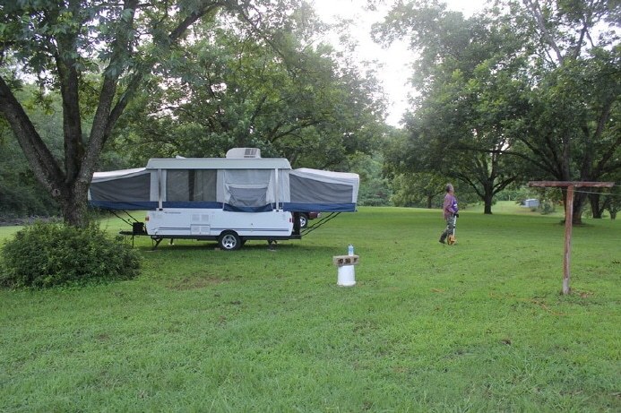 Pop-up camper made for a cozy, comfortable QTH for Glenn and Randy. We nestled it right under one of the beautiful pecan trees on the property in Union, MS. This kept it in shade most of the day... not that there was a lot of sun this weekend...