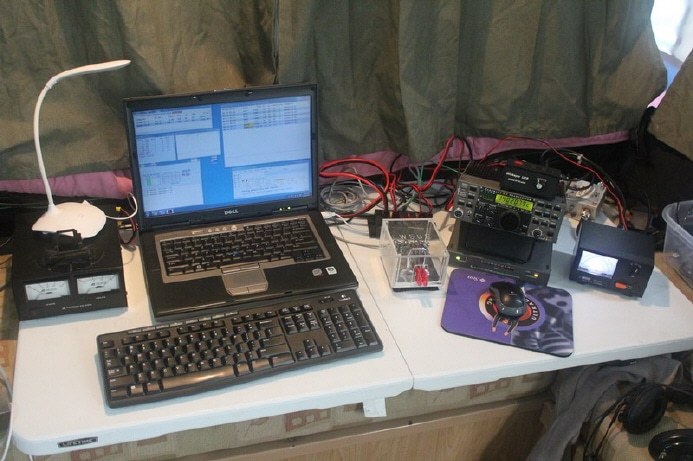 Randy's CW station configuration.... Elecraft K2/100, KAT100 ATU, WinKeyer USB, laptop running N1MM+ in network mode with rig control and power/SWR meter....