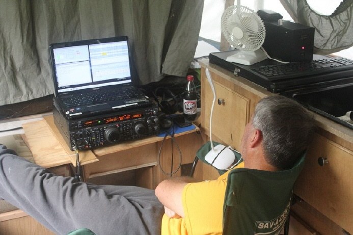This was actually Friday afternoon after a long day of setup... Glenn was catching a few ZZZZs...