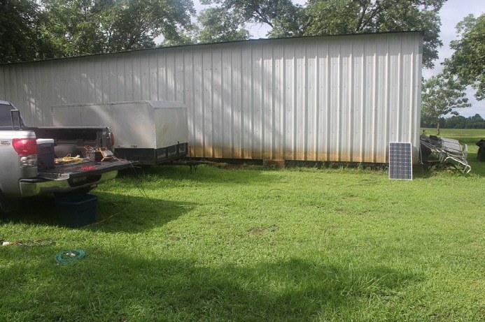 Batteries and charge controller were sitting in the bed of my truck being charged by the panel laying against the shed.