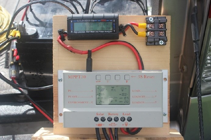 Close-up of the charge controller display showing fully charged batteries.. We had a little sun on Saturday morning allowing the batteries to get fully charged... I made the 5 QSOs under battery power on Sunday morning...